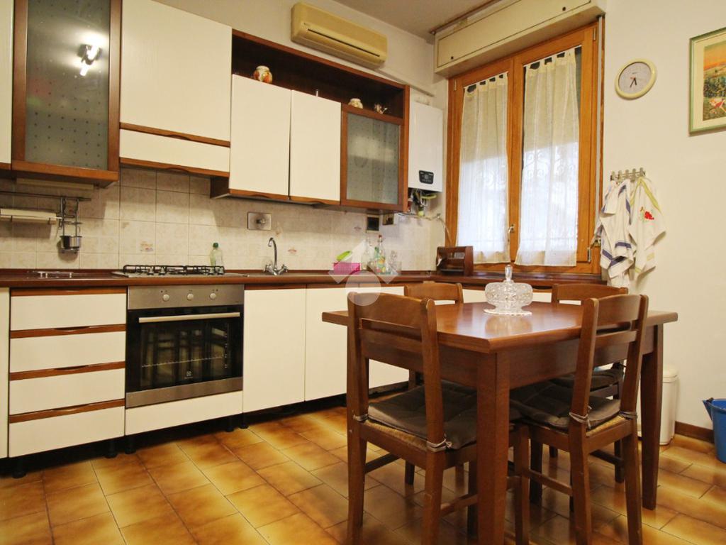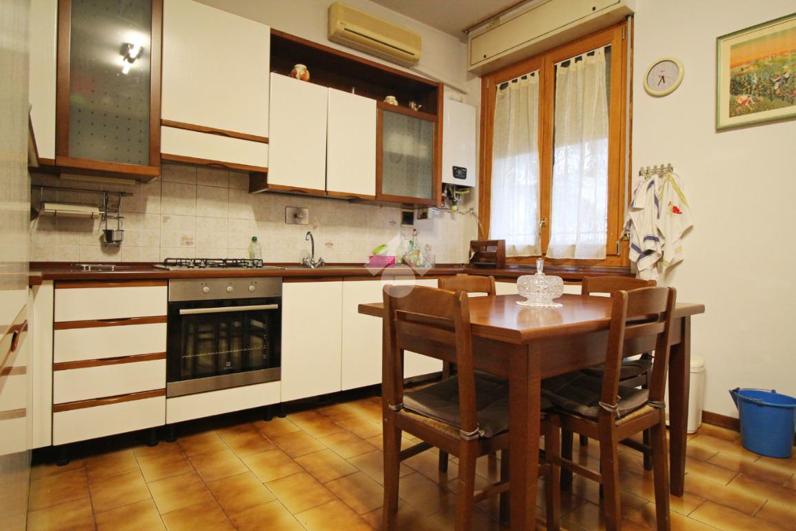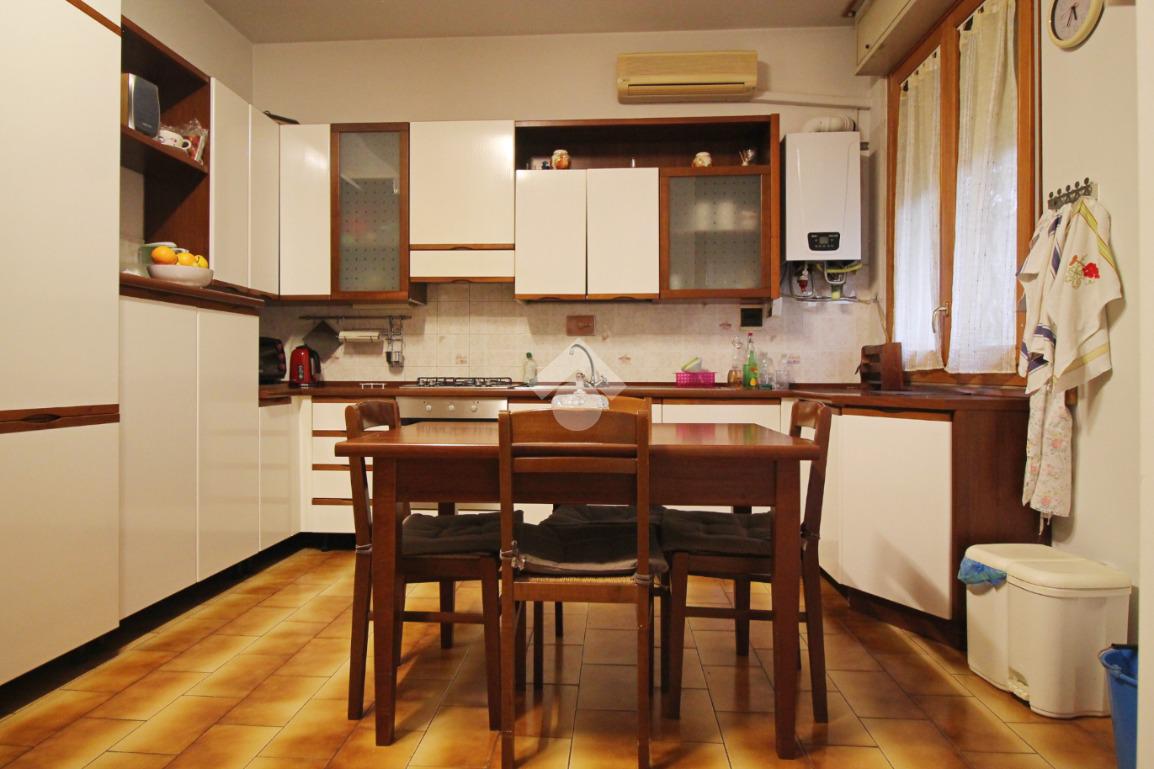 La cucina è ampia e dotata di angolo cottura, la luminosità della stanza è data anche dalla presenza della porta finestra che ci conduce al giardino privato presente sul retro della casa.