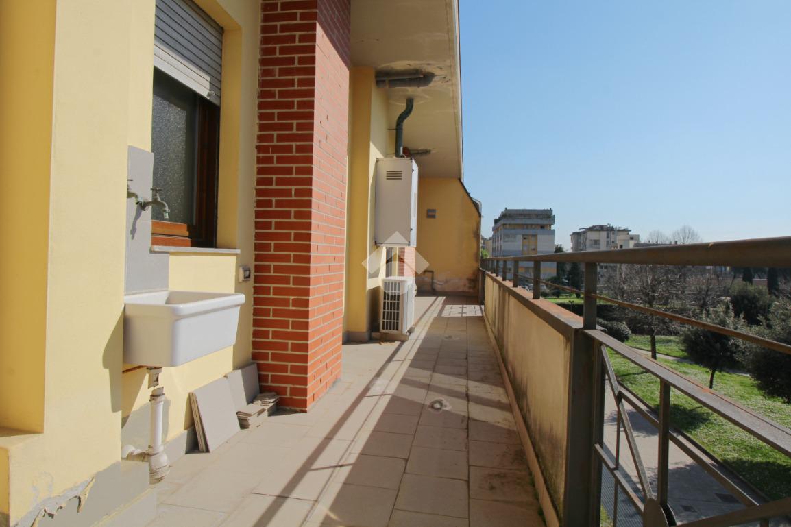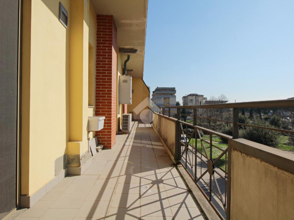 Da entrambe le camere ed il soggiorno possiamo accedere anche allo spazioso terrazzo con illuminazione a sud-est che permette il grande accesso di luce alla casa.
