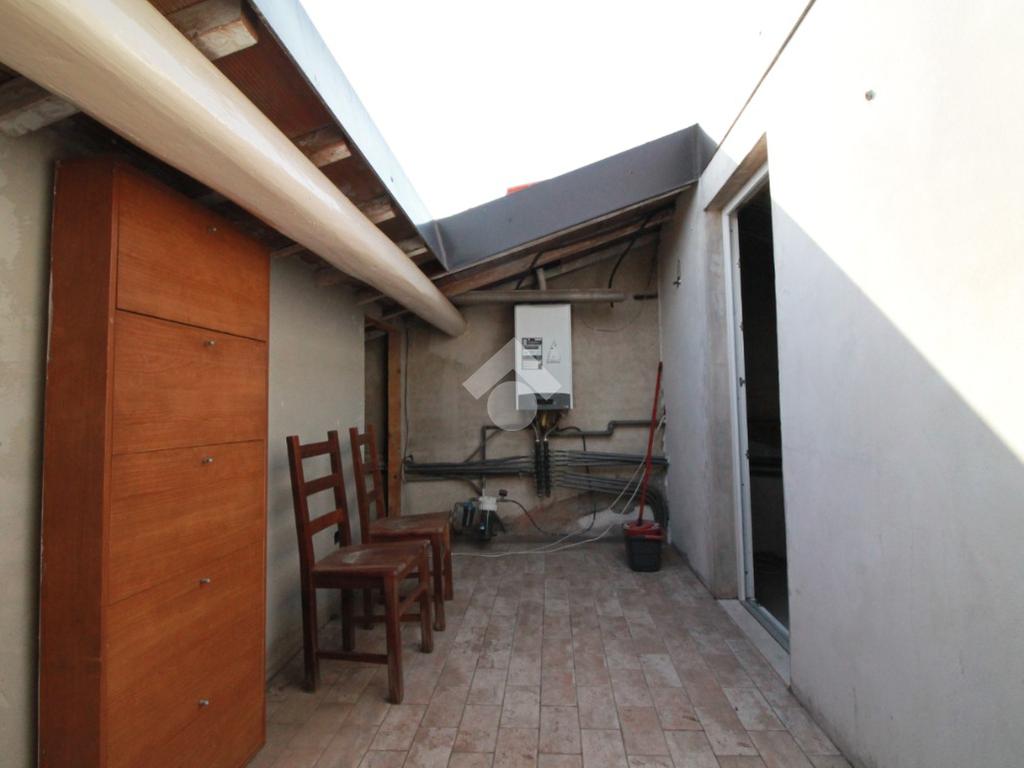 Al secondo piano, invece, abbiamo la mansarda abitabile, che può essere adibita come terza camera, con accesso al terrazzo. Completa la proprietà la corte interna.