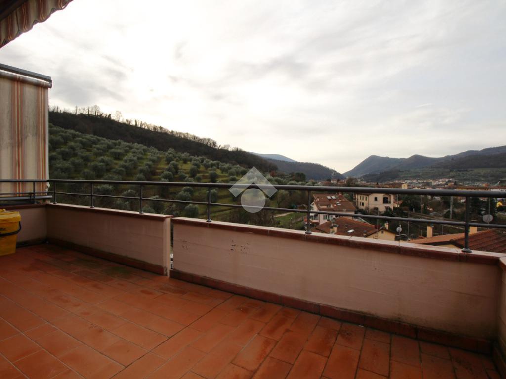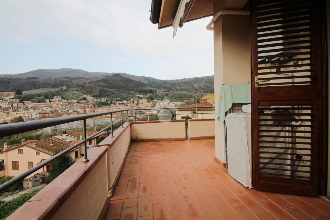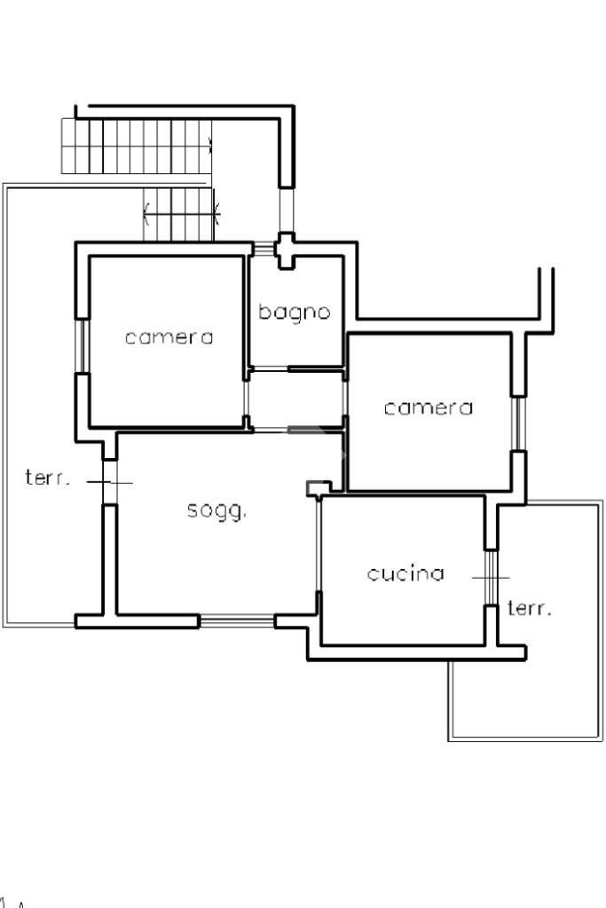 Varcato l'ingresso ci troviamo in un ampio e luminoso soggiorno dal quale possiamo accedere un ampio cucinotto da cui si può arrivare allo spazioso e luminoso terrazzo con vista sulle montagne.